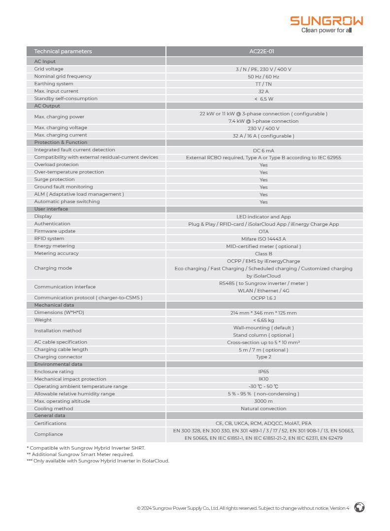 Wallbox  Sungrow 22 kW AC022E-01 – Inklusive Montage & Netzanmeldung