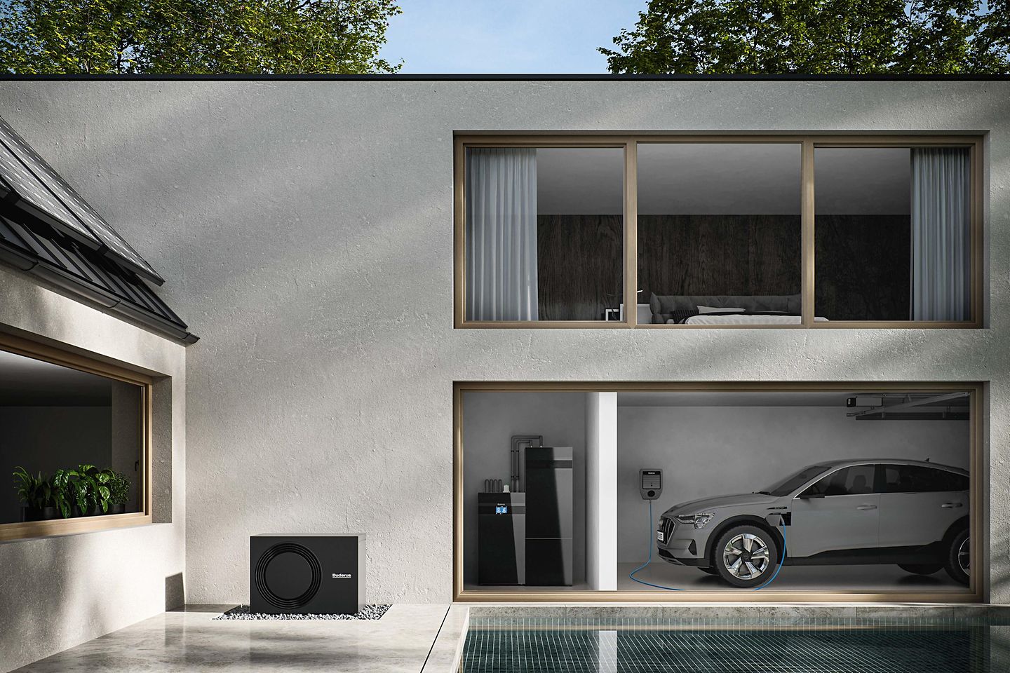 Ihre neue Buderus Wärmepumpe kann nahtlos mit einer intelligenten PV-Anlage kombiniert werden. Produzieren Sie den Strom für Ihre Wärmepumpe einfach selbst auf dem Dach. Diese smarte Kopplung optimiert Ihren Eigenverbrauch und macht Sie maximal unabhängig von externen Energieversorgern.